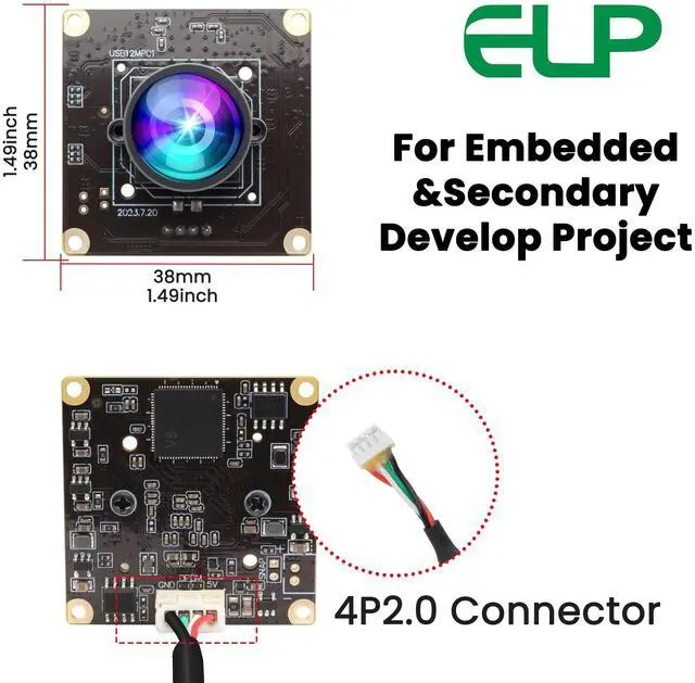 ^^ Mini Illumination: 0.1L ux, MJPEG and YUY2 compression format optional. ^^ High speed USB 2.0 interface for high resolution PC camera interface. ^^ Mini size, light weight, super small outline and thin profile for embedded applications mini size 38x38mm. ^^ Camera with UVC for computer, laptop, pc, raspberry Pi, Jetson Nano, etc.
