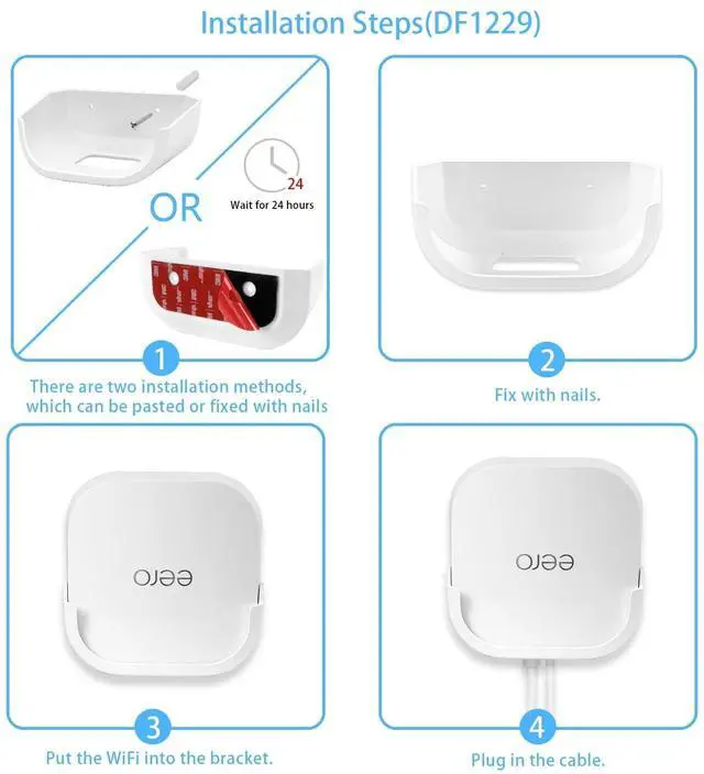 No Tools+ No Hole: Use VHB strong adhesive to fix it at a proper height and position. After 24 hours, it will be firmer. You can install the eero. If you need to remove it, you can use a hair dryer.
