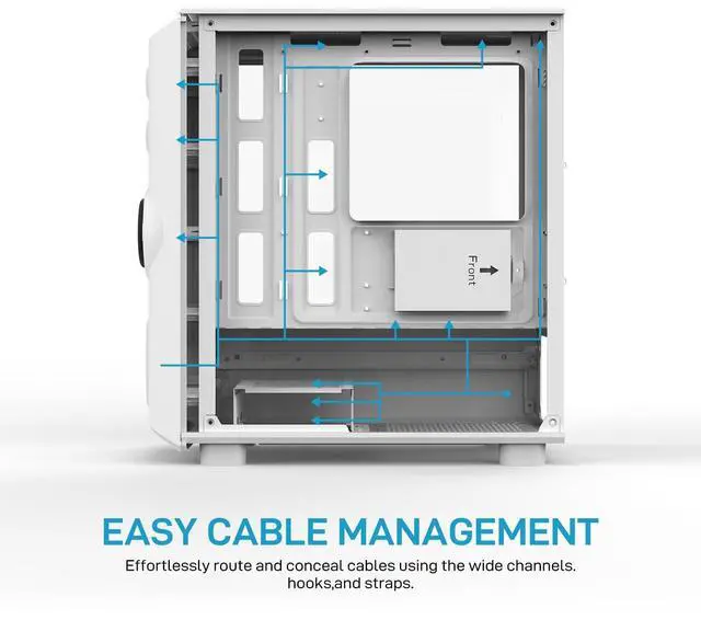 Stunning Side View & ARGB Control: Features a premium full tempered glass side panel to showcase your build and includes a convenient ARGB control button for easy lighting customization. ^^ Optimized Cooling with