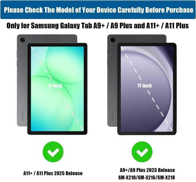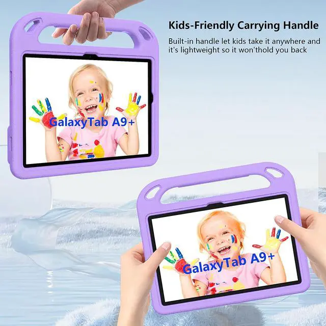 Galaxy A9 plus 2023(Model: SM-X210/X216/X218), Note: Incompatible with another models. Please confirm your tablet model before purchasing. ^^ Kids Friendly KYWYNI Samsung Galaxy Tab A9 Plus 11 inch kids case features a handle stand design with flip functionality, it provides dual viewing angles, allowing children to easily watch videos, play games, or drawing. Additionally, it ensures a secure grip, preventing accidental drops. ^^ Functional Double Kickstands Kids samsung a9 plus tablet case for built in double kickstands, makes your iPad stands more sturdy, and provides with hand-free watching! (It provide with typing and viewing angles). Double kickstands design will share the weight of your precious Tablet simultaneously, so this case will be more durable. ^^ Precise OpeningsGalaxy tab a9 plus case gives easy access to ALL buttons, ports, And this great Galaxy Tab A9+11 inch Tablet kids case is also easy to install.