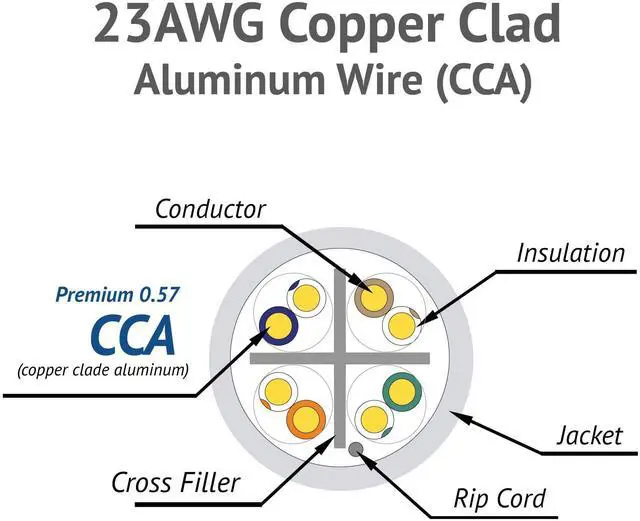 Ethernet Cable]: The Copper Clad outdoor Ethernet cable that is soft, flexible, weatherproof, and resists sun, rain, snow, and low/high temperatures. Cat6 23AWG UTP conductor features 1.0 mm insulation. An RJ45 connector with a 1.05 mm diameter is recommended for optimal fit. ^^ [High-quality Copper Clad Aluminum (CCA)
