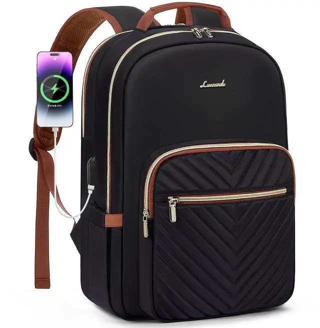Upgraded Laptop Backpack Women: Classic V-shaped embroidery thread. Upgraded double LOVEVOOK no-slip metal zippers, water resistant Nylon fabric with polyester lining, ensures long lasting usage. Total of 4 compartments and 16 pockets for your computer, A4 folder, bottles, umbrellas, clothes, work supplies, college supplies and travel essentials.