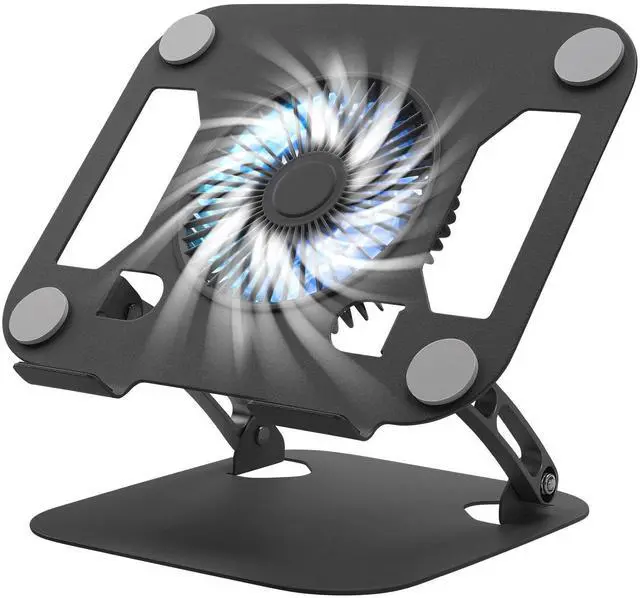 ^^ [Height and Angle Adjustable]- Working in your most comfortable position can boost your productivity and creativity. This laptop stand allows you to adjust freely the height to 11.8 inches adjust angle from 0 to 120 degrees, so you can comfortably work in sitting positions. ^^ [Stable Carbon Steel Framework] This laptop cooling stand, weighing 3.2LBS, offers a solid and balanced feel, preventing any tipping or slipping. There are rubbers on the bottom of the base and the top of the stand panel, effectively preventing scratches to the tabletop or laptop.