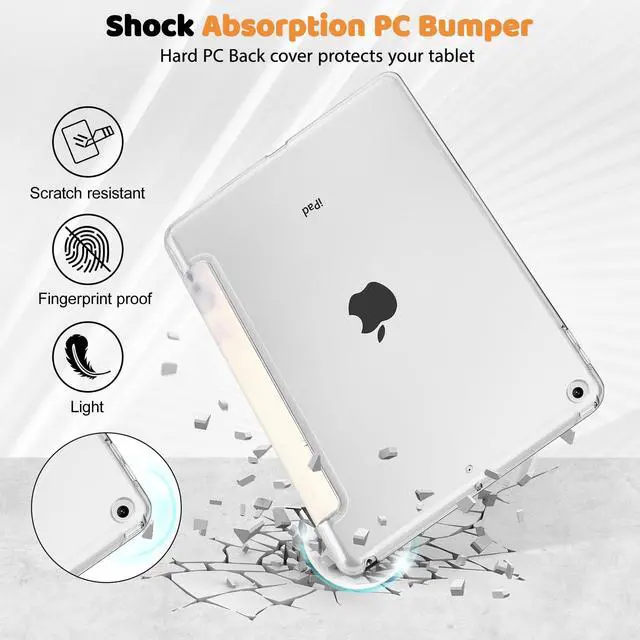 Generation Model: A2197/A2200/A2198. Premium MaterialThe clear transparent back shell is made from durable PC material, and keeps iPad slim, clear and lightweight in the same time. Multi-pattern ChoiceThe unique patterns created by the designer make your iPad unique and fashion, a perfect gift to your friend or family. Smart CoverProvides auto sleep/wake function with built-in magnetic strip. Comfortable viewing angleMagnetic cover easily transforms the case into viewing and typing stand. Precise CutoutsNecessary cut-outs for speaker, lighting port, camera and flash, easily access to all buttons without remove the case. PLEASE NOTEColors shown in pictures may slightly differ from actual product due to lighting and color settings. Package include1 Pack of clear PC Protective Case for iPad 10.2 inch 9th/8th/7th Generation.