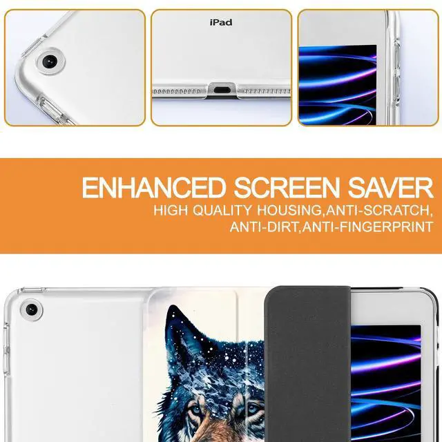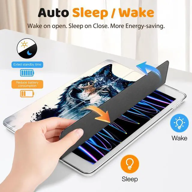 Tuiklol Case for iPad 10.2 inch case 2021 Release 9th Gen,Trifold Stand-Auto Wake/Sleep PC Protection Stand PC Clear Back Cover for iPad 2020 2019 [8th/7th], Wolf