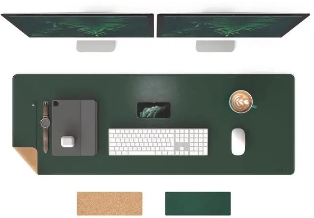 DUAL-SIDED PAD: Made with natural cork and vegan leather, this large desk pad adapts to any occasion, The 0.08 -inch thickness cushions your wrists during gaming or office work ^^