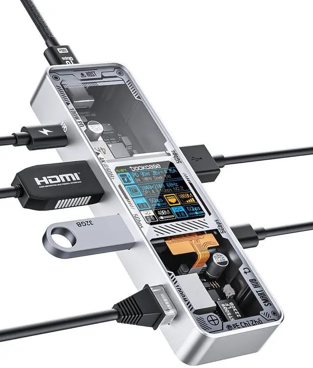 Dockcase Explorer Edition: Smart USB-C Hub 6-in-1, the perfect hub solution that combines functionality with style. With its sleek design, Dockcase stands out from the rest. Its commonly used interfaces meet your daily needs and the display and D-Key function control allows for customization of usage, giving you the power to take on even the most demanding tasks. Whether for work or play, Dockcase delivers a significant boost in performance, making it the perfect addition to your setup ^^ High-Speed +