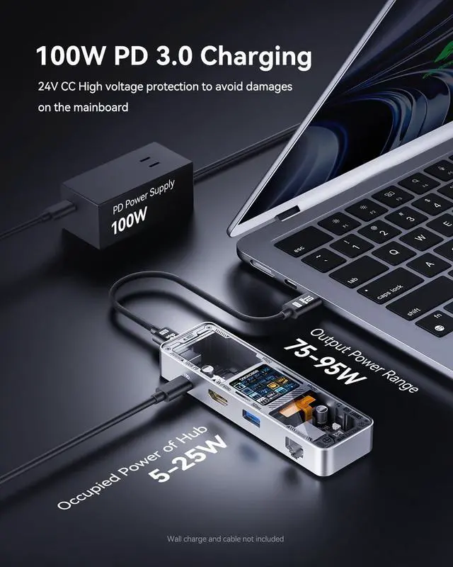 Safely: 2 USB A 3.0 & 1 USB C data ports support 5gbps high-speed transmission and 1 Gigabit Ethernet up to 1Gbp/s, while an HDMI port supports media display at resolutions up to 4K@60Hz, as well as high-velocity pass-through charging with 100W Power Delivery ^^