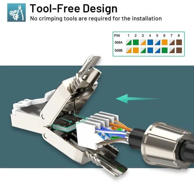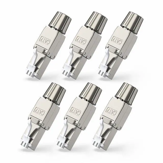 Metal Construction: Built with a rugged full metal jacket, this RJ45 field terminable plug is perfect for Cat7 cable assemblies, wireless access points, and connections to network switches and servers. It's a tough and reliable alternative to standard RJ45 modular plugs ^^
