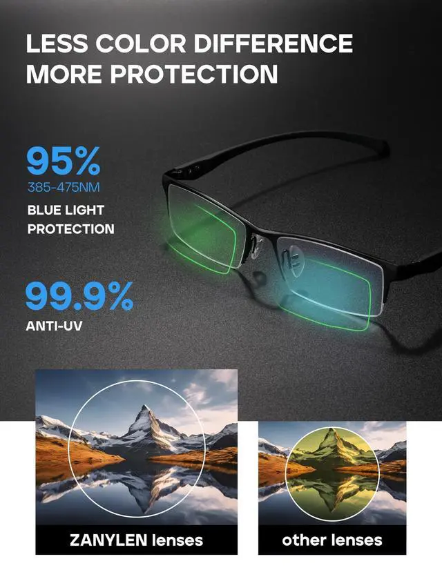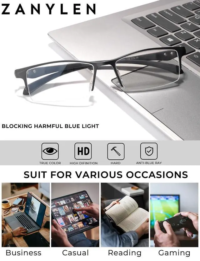 Best Blue Light Glasses for MenZanyLen semi rimless rectangular blue light blocking glasses are made of durable, comfortable metal and TR90. The rectangle design fits round-shaped face, rectangular-shaped face, oval-shaped face and square-shaped face. Adjustable silicone air cushion nose pads are comfortable for wearing. This is a great blue light glasses for men who playing computer gaming for long hours.