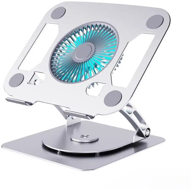 SHUWEI Laptop Cooling Stand with 3 Speed Fan, Adjustable Height & Angle, 360 Rotation Base, Carbon Steel Framework, Ultra-Quiet & Super Sturdy for up to 16Laptop - Silver