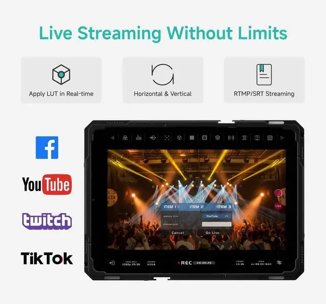 Livestreaming: The video adapter livestream by 4G/5G or Wi-Fi. The Accsoon SEE app helps reaching your audiences from anywhere using RTMP to popular video streaming sites, including Facebook Live, Twitch, and YouTube ^^