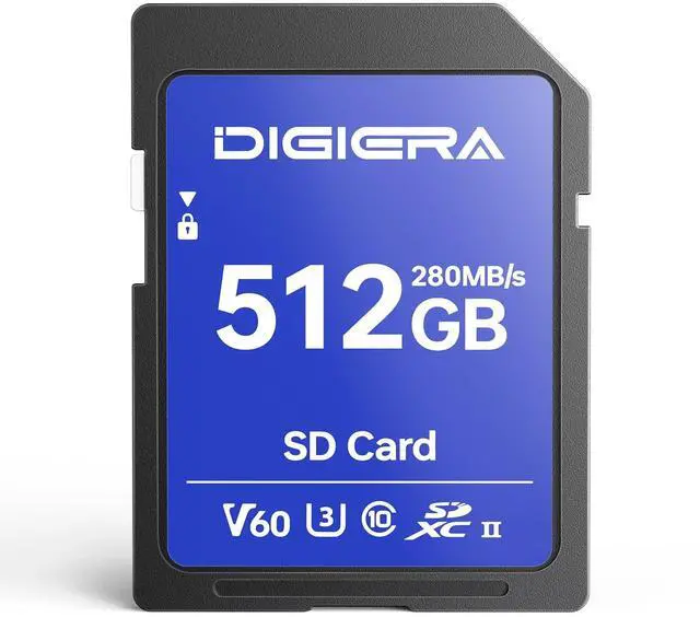High-Speed Performance: Featuring UHS-II bus interface, the DIGIERA SD card delivers up to 280MB/s read and 160MB/s write speeds, making it perfect for transferring 6K videos, RAW photos, and large files quickly. Based on internal testing, performance may be lower depending on host devices, interfaces, usage conditions, and other factors ^^ 512GB