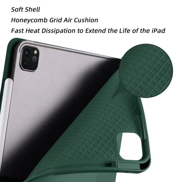 Perfect Fit: Easy access to all the controls and features (Cameras, Speaker, Ports and Buttons). Built-in apple ipad pencil holder (Pencil is not included), Support apple 2nd pencil wireless charging & pair. The inpner layer provides honeycomb grid pattern air cushion that can rextend ipad useful life