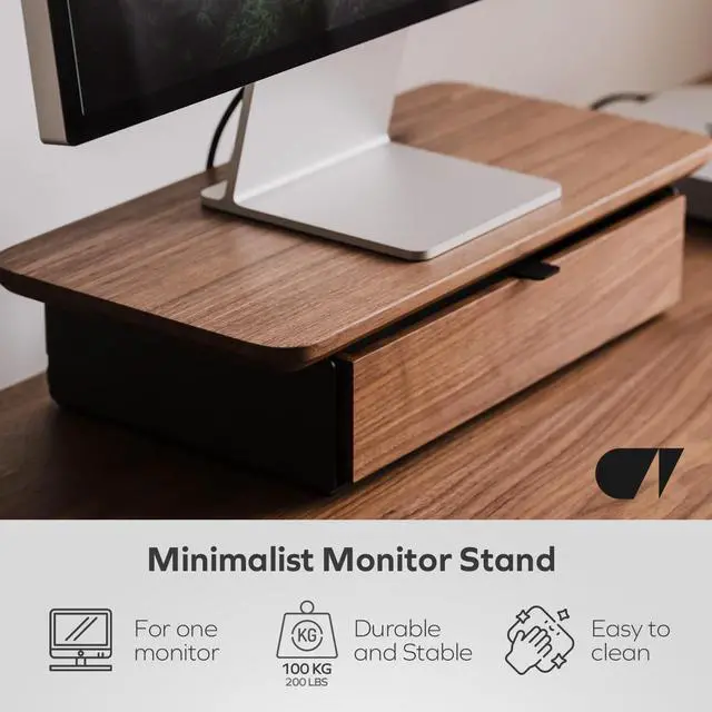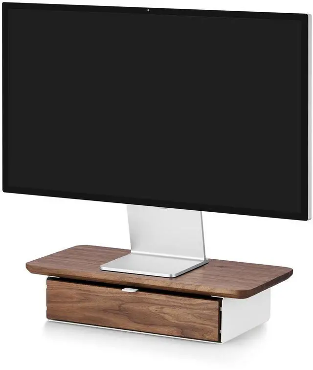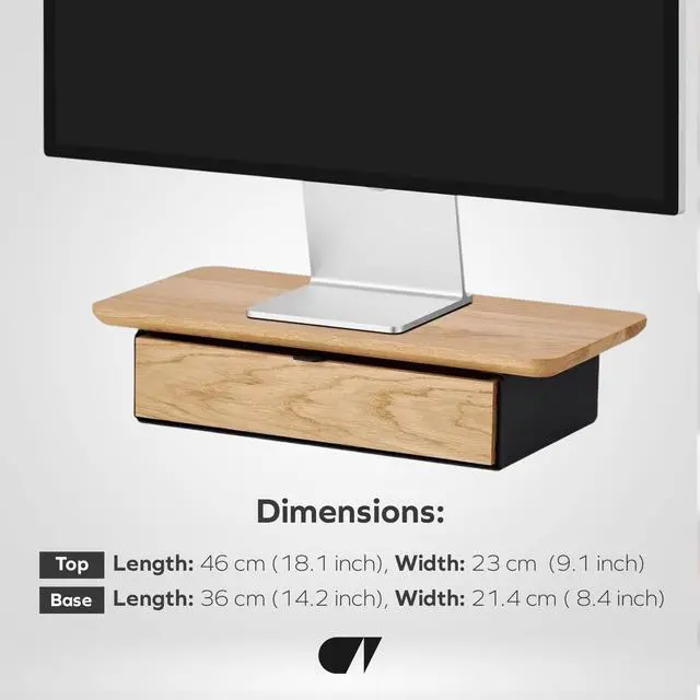 ^^ Versatile: Thanks to its sturdy steel base with drawer, the shelf serves both as an ergonomic monitor stand and as a room organizer. It simplifies work and ensures a comfortable and tidy desk.