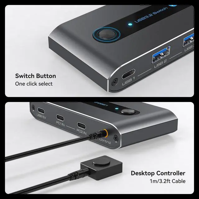 Remote Switching: Using the wired remote control to switch, you can place the USB switcher outside of the work area to make the desktop more neat and tidy ^^ Wide CompatibilityUSB 3.2 switcher is plug and play, no driver required, widely compatible with multiple systems, support Windows XP/ Vista/ 7/ 8/ 8.1 / 10/ 11, Linux, and Mac and other operating systems.