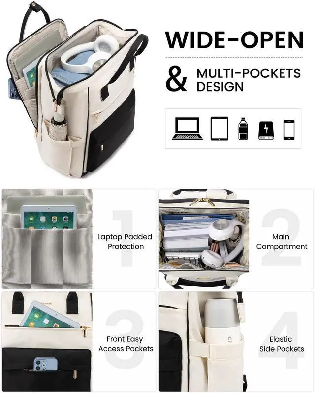 ROOMY & EASY-ACCESS WORK BACKPACKLOVEVOOK backpack for women features a wide, rectangular opening for a spacious interior, ensuring effortless retrieval of your items.