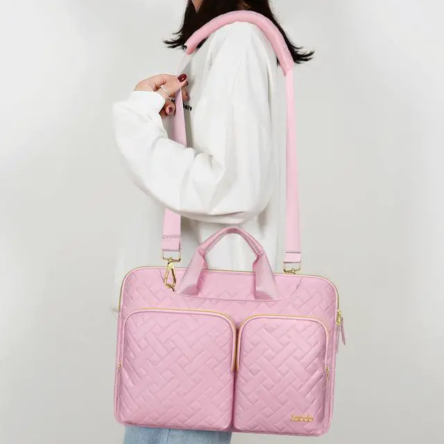 ^^ MULTIPLE POCKETS: The main compartment perfectly fits your laptop, with smooth two-way zipper offer secure and quick access. Extra two large compartments and two front pockets own enough storage space allows you to store your iPad, small notebook, power brick and cord, charger, power bank, hard drives or other electronics. This laptop shoulder bag with lots of accessory pockets is very spacious and safe. Lacdo well-crafted laptop bag will keep your every item secure and well-organized.