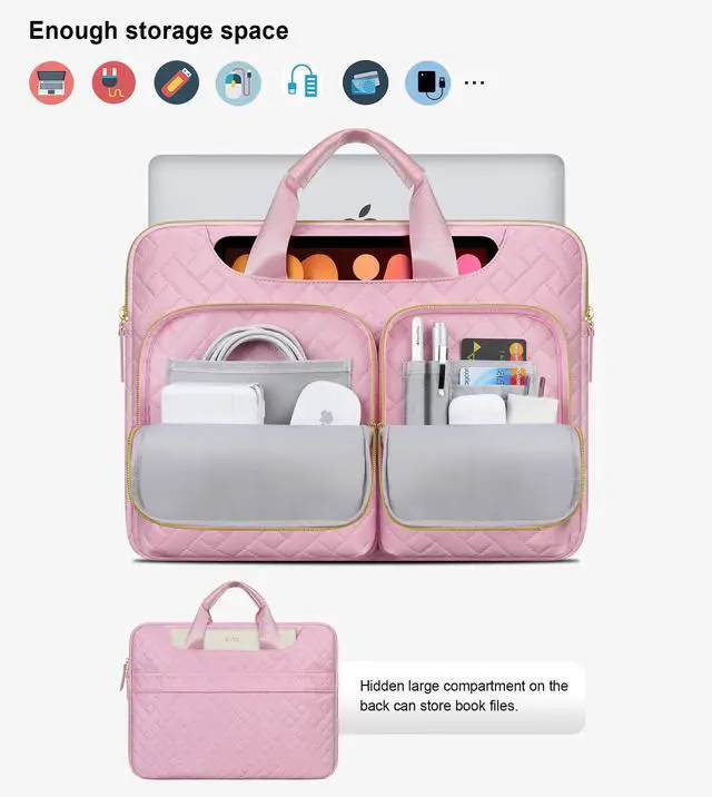 ^^ COMPREHENSIVE PROTECTION: Fortified by 360 Degree All-around protective Thickened Plush Edge frames, this computer bag excels in great cushioning and shock absorption, protecting your laptop from damages caused by accidental minor shocks, bumps, or dropping. The laptop bag, in addition, filled with high-elasticity sponge buffer material for added further protection. Enhance laptop storage comfort, offer soft and sturdy protection.
