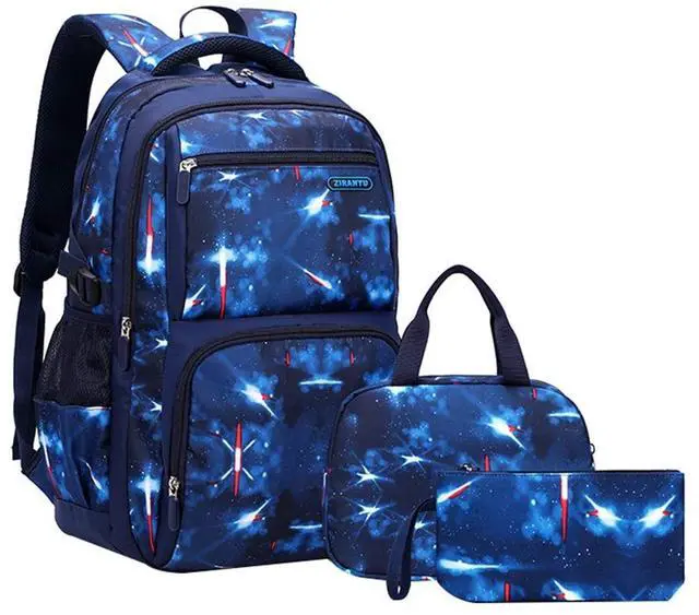 JiaYou Space Pattern Galaxy Backpack Boys Primary Junior Middle School Daypack Men High Middle School Laptop Bag(Space-Blue,3Pcs Backpack Set)