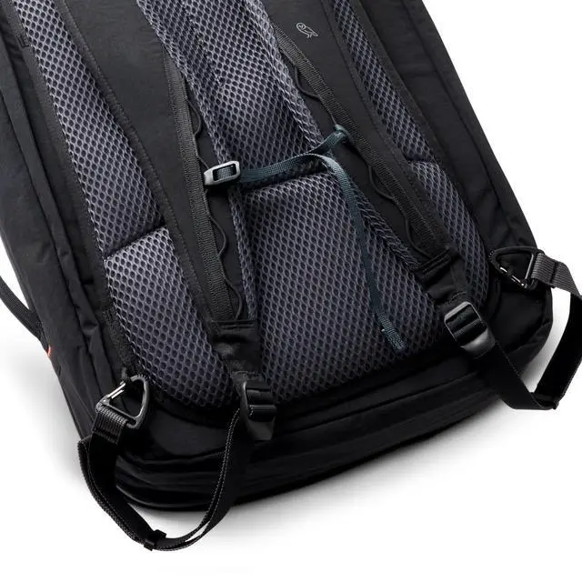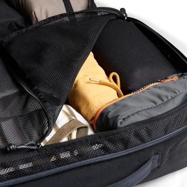This large carry-on backpack is loaded with features to help you streamline travel time. It folds out flat for easy packing and access to its large 38L capacity. ^^ The exterior top pocket has organization for your passport, pens and personal effects, while the lower pocket is perfect for stashing a light jacket or sweater. Built-in packing cells keep the interior organized and fold away flat when not in use. ^^ The shoulder straps tuck away neatly when you need to check it or stow it overhead, while the handy luggage pass-through and carry handle let you choose your carry mode.
