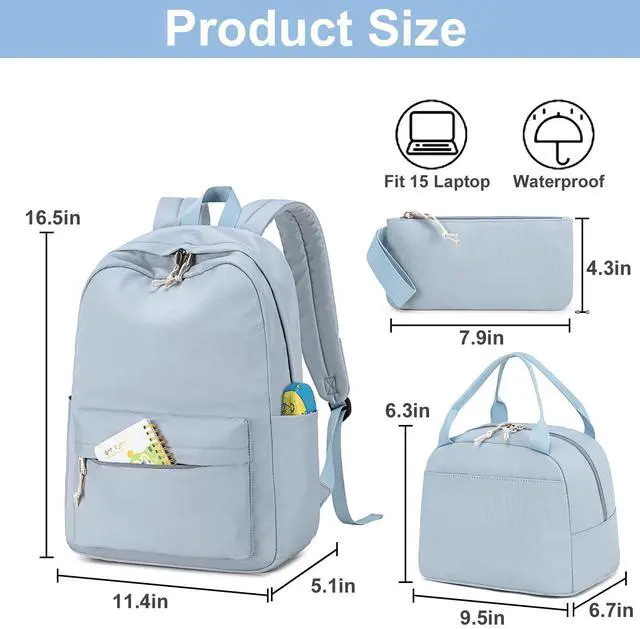 Description3-in-1 Backpack Set for Girls is the perfect school companion that combines style, durability, and functionality. This adorable set includes a cute floral backpack, an insulated lunch tote, and a versatile pencil case that doubles as a clutch pouch - everything your teen girl needs for school and beyond. The sturdy, double-stitched backpack (12"x 6.5" x17") features a padded 15-inch laptop compartment and plenty of space for books, notebooks, and school supplies, while the smooth metal zippers ensure easy access. The insulated lunch bag (10"x7"x8") keeps meals fresh and fits two lunch boxes plus snacks, with extra pockets for phones and cards - perfect for school, shopping, or picnics.