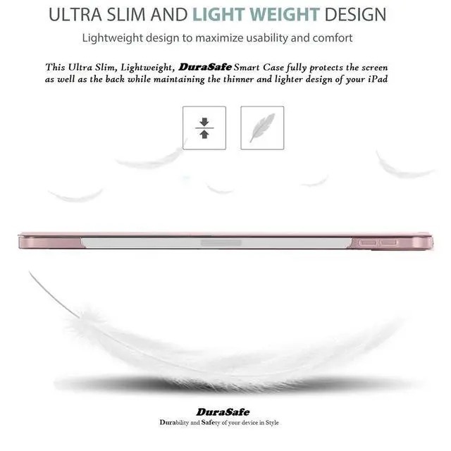 High Quality Lightweight Material & Excellent design makes this case feel very Stylish & Premium & Fully Protects your device against Shock, Abrasion, Scratch, Fingerprint, Slips, Dirt & Corner Damages. ^^ Dual-Angle Viewing/Typing Built-in Dual Angle Viewing/Typing Stand makes it much more comfortable for Typing, watching videos, surfing web & reading while keeping both your Hands Free & avoids any Joint Pain. Allows unobstructed gesture swipes & enhances the beauty of your iPad due to its exclusive Bezel-Free design. Built-in Magnet also helps to hold your iPad steady while using the Multi-Angle Stand feature & prevents your iPad from falling.