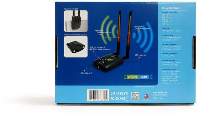 Antenna Type: 2 x Dual-Band High-gain detachable antenna.