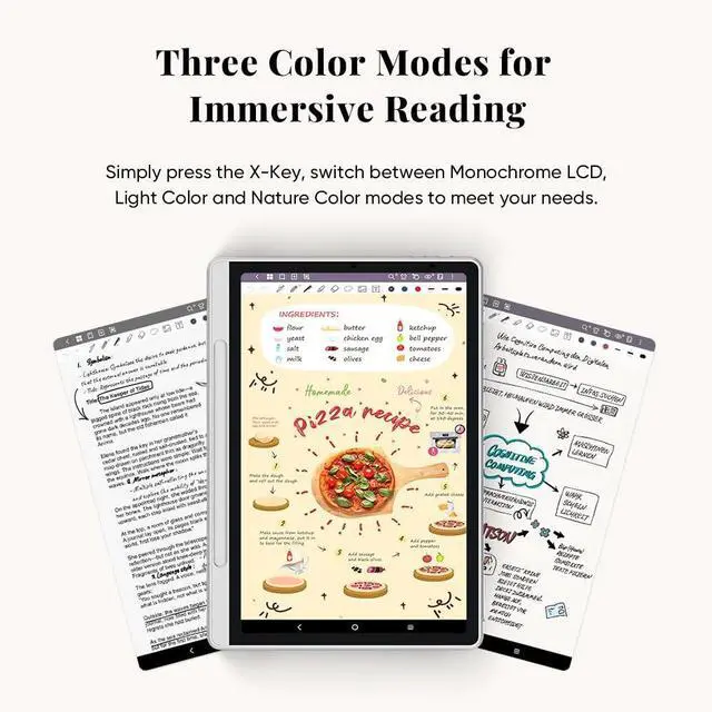 Please Note: It is NOT an e-ink Tablet, it is a Normal Android Tablet. The XPPen digital notetaking tablet comes with an X-key, you can choose between Monochrome LCD, Light Color, and Nature Color modes with one press. 3 color modes can meet all kinds of needs ^^