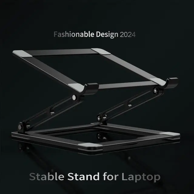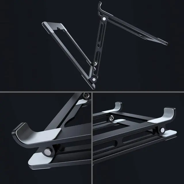 Ergonomic Laptop Riser-The laptop stand elevates the laptop screen to 8 inch to eye level and helps fix your posture and reduce neck pain, back pain and eye strain, creating extra space and help to work more ergonomically. It's very comfortable for working at home, office and outdoor, making typing more easier. ^^ Folding Portability & Multi-use Practical- No assembly required. Foldable laptop holder to save space for easy storage and handle for easy carrying. This portable laptop stand works in a variety for setting including: office, meeting room, library, kitchen, and at home to hold the laptops, projectors, menu, tablets, music scores, magazines etc. A practical gift for your friends and family. ^^ Sturdy & Protective- The laptop computer stand is made of thicker 6mm aluminum alloy, and supports up to 11 lbs. (5kg) weight. Twelve slide-proof silicone pads keep the stand from sliding and to be more stable, 30mm protective double hooks ensure your computer does not slide off the stand offering maximum protection for your device from any scratches and sliding. ^^ Heat DissipationPremium Aluminum alloy material acts as thermal pads to help keep your laptop cool. The forward-tilt angle and open design offers great ventilation and airflow to prevent your notebook from overheating. ^^ Wide CompatibilityThis laptop stand fits all tablets and laptops from 10 to 17.3, such as Mac MacBook Air/MacBook Pro/ Microsoft Surface/ Google Pixel book/ Dell XPS/ HP ASUS/ Lenovo Acer /Chromebook and more 10 inch - 17.3 inch laptop notebooks.