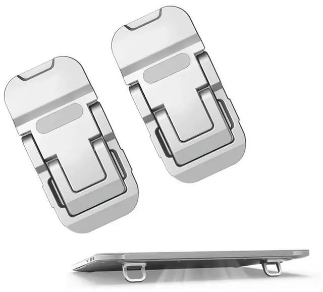 Compact and portable: This keyboard stand is very small, measuring only 2.36 * 1.18 * 0.39 in (approximately 6*3*1CM) and weighing only 1.5 ounces (approximately 43 grams). It attaches magnetically to the bottom of a laptop, taking up no space. It is easy to open and compact when folded up. ^^ Two adjustable angles to suit your needs: The portable stand has two angles that can be switched freely. The first angle is 3.5CM with an 8 viewing angle, and the second angle is 6CM with a 13 viewing angle. This ergonomically designed angle allows for comfortable use of your laptop screen, protects your cervical spine, and promotes a healthy office posture. ^^ Made of metal, sturdy