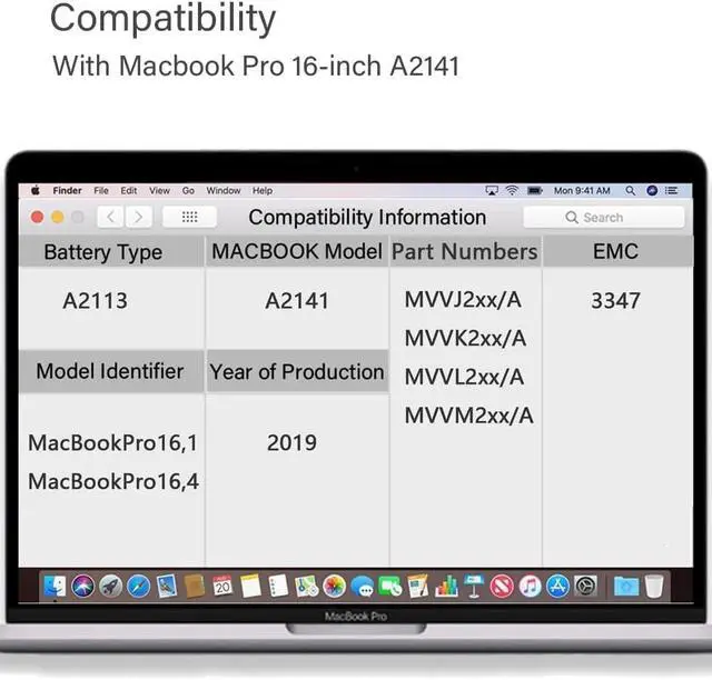 Compatibility: Compatible with MacBook Pro 16 inch A2141 (Year 2019), EMC