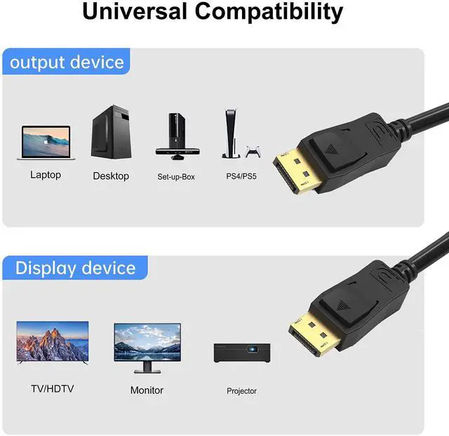 Such as DisplayPort PC, Docking station, Display Port Swich, Display Port Splitter, DisplayPort MST Hub ^^ Gold-plated connectors, bare copper conductors, and foil & braid shielding combine together to provide both superior cable performance and reliable connectivity ^^ DP connector with latches provides a secure connection with a release button that must be depressed before unplugging ^^ 18 Month WARRANTY - UKYEE 18-month warranty ensures long-time satisfaction of your purchase; Friendly and easy-to-reach customer service to solve your problems timely.