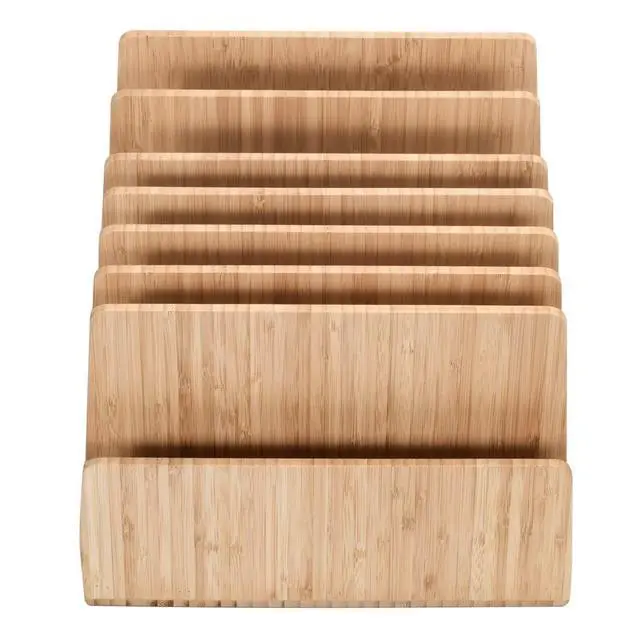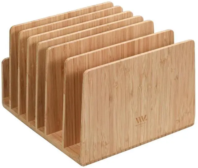 [Versatile 7-Slot Design] This bamboo organizer features five standard 1-inch slots ideal for smartphones and tablets, complemented by two extra-wide 2-inch slots specifically designed to accommodate thicker laptops, larger tablets, and even items with protective cases, ensuring all your essential tech and materials are neatly stored. ^^ [Accommodates More Than Just Devices] Beyond electronics, utilize the seven thoughtfully spaced slots to efficiently organize a variety of items such as file folders, standard 3-ring binders, magazines, manuals, and thin books, helping you maintain a tidy and productive workspace in any setting.