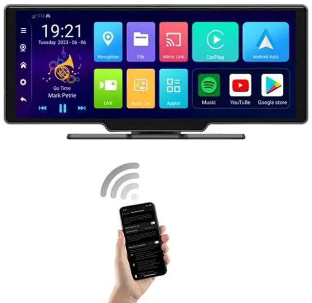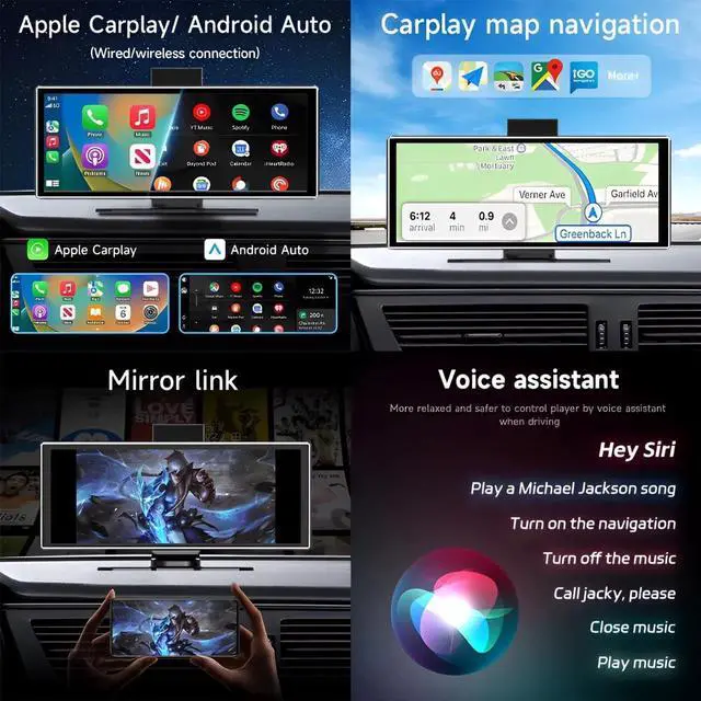 - **Multi-Language Support: ** Compatible with multiple languages for global usability. ## **Why Choose This Portable Car Screen? ** **All-in-One Solution** Combines **entertainment, navigation, and safety** in a single device. **Crystal-Clear Recording** **4K dash cam** with night vision for maximum security. **Enhanced Safety** **Backup camera** reduces blind spots for stress-free parking. **Wireless Convenience** No tangled cables with **wireless CarPlay & Android Auto**. **User-Friendly** Easy installation, intuitive touch controls, and plug-and-play functionality.