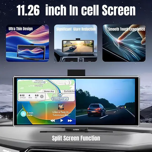 11.26 -Inch FHD Portable Wireless Screen for Car Ultimate In-Car Entertainment & Safety Solution** **Introduction** Upgrade your driving experience with the ** 11.26 -Inch FHD Portable Wireless Screen**, a cutting-edge device that combines **Apple CarPlay, Android Auto, a 4K dash cam, and a backup camera** into one sleek, multifunctional system. Whether you're looking for seamless smartphone integration, crystal-clear recording, or enhanced rearview visibility, this all-in-one solution delivers premium performance for modern drivers. **Key Features** **1. Stunning 11.26 -Inch Full HD Display** Enjoy crisp, vibrant visuals on an ** 11.26 -inch Full HD (1920x1080) touchscreen** with wide viewing angles.