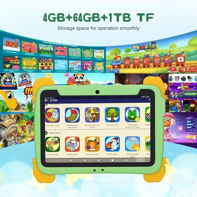 ^^ Having Fun Of Learning For ChildrenC idea 10.1 inch kids tablet with 4GB RAM and 64GB ROM and 6000mAh capacity battery life, Really a perfect choice for kids entertainment and online learning. whats more the Micro SD card (up to 1TB) expand storage allow to download the latest educational apps from the Google Play Store, including YouTube Kids, Netflix and more. ^^ Durable Kid-proof CaseC idea child tablet comes with a cover case, Durable and lightweight. The tablet case is made of child-safe and non-toxic EVA foam bubble material with adjustable stand to support your kids tablet.