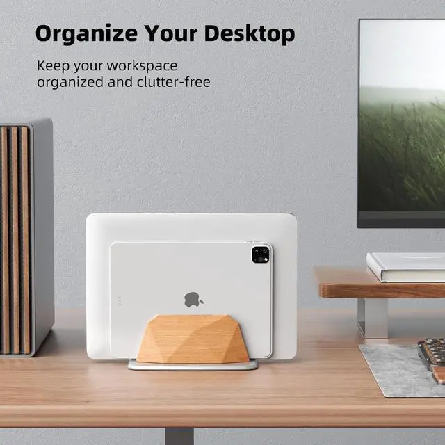Single-Slot Vertical Design: Featuring a space-saving single-slot design, this stand holds your laptop upright, freeing up valuable desk space. By reducing clutter and organizing your workspace, it creates a cleaner, more efficient environment for both home and office use. ^^ Geometric Elegance with