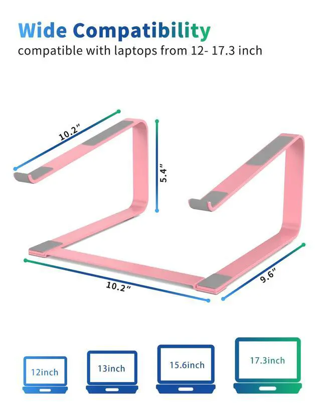• Compatitable with 12-17.3 Inches Laptops - Slim but wider support arms. The laptop stand fits all laptops 12 to 17.3 inches, such as notebook PC computers 12 inches, 13 inches, 13.3 inches, 14 inches, 15 inches, 15.4 inches, 15.6 inches, 16 inches, 17 inches, 17.3 inches, etc.