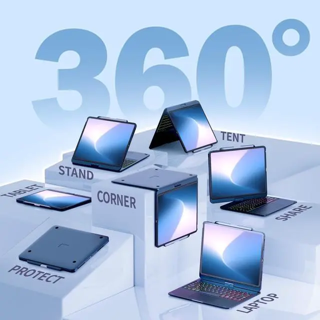 ipad air 13 inch case with keyboard also comes with a more efficient chip, so you won't experience any lag when using the ipad air 13 inch keyboard, and the touchpad will be even smoother. When you don't need to use the touchpad, you can turn it ON/OFF by pressing FN+T, avoiding accidental touches while typing. ^^ Rainbow Backlightipad 13 pro case with keyboard features a rainbow backlight with eye-protective soft light, with 3 brightness levels that can be adjusted, allowing you to type easily in dark environments or at night.