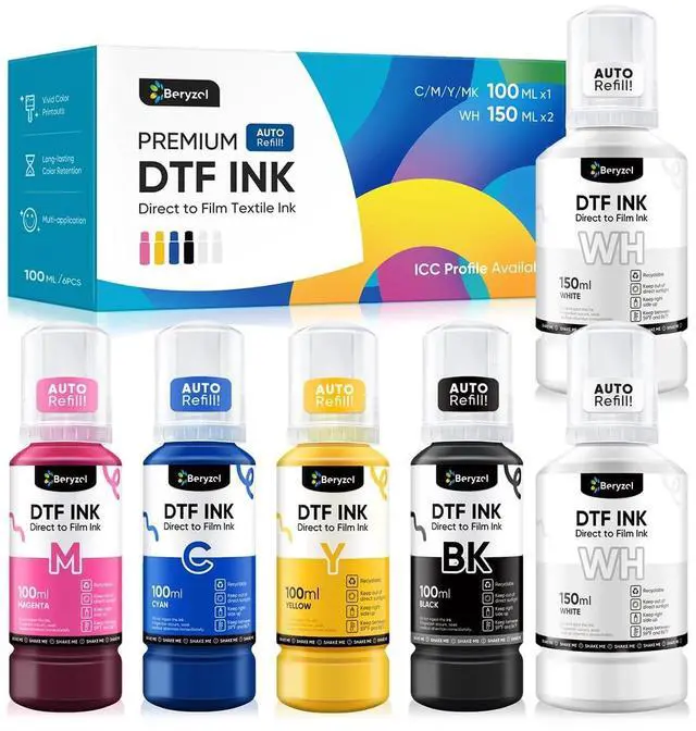 What You Get: Experience top-tier DTF printing with Beryzol's Auto-Fill DTF ink bundle. You'll receive a generous 100ml of Cyan, Magenta, Yellow, and Black ink, along with a substantial 300ml of White ink ensuring you have an ample supply for your projects. The DTF Ink Conversion Kit makes refilling simple and convenient, and once you receive it.