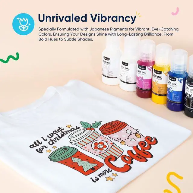 ^^ Dazzling color effects: Beryzol DTF Ink presents vivid and eye-catching colors based on the principles of color theory. From bold and intense tones to subtle shades, our ink ensures your designs shine with vibrant colors and long-lasting durability. For best results, use Beryzol DTF film and DTF powder.