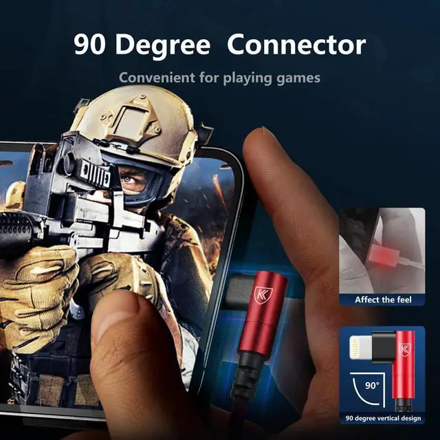90 Degree iPhone Charger Cable: The 90 degree USB C to lightning cable 6ft comes with L shapes connections (Lightning end), which can fit the device sideways. 90 degree extra long 6 foot iPhone charger cord is more convenient for playing games, watching video when you while charging.