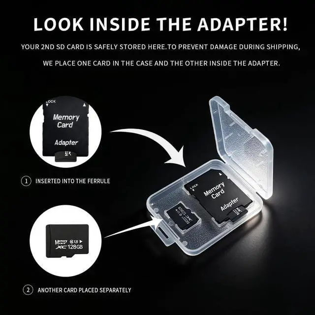 [U3 V30 High-Speed Performance 4K Ready] Built to U3 & V30 speed standards, delivering fast read and stable write speeds for 4K UHD video recording, continuous shooting, and smooth data transfer without lag or dropped frames. ^^ [High Endurance for Continuous Recording] Designed with high-endurance flash memory, ideal for 24/7 loop recording. Perfect for dash cams, security cameras, body cams, and other devices requiring constant writing. ^^ [Multi-Protection (Refuse Features) ] Engineered for durability and data safety: Waterproof Shockproof Magnet-proof X-ray proof Temperature-resistant Keeps your data safe even in harsh environments. ^^ [Complete Accessory Kit Plug & Play] Includes 2 128GB MicroSDXC cards, 1 SD adapter, and 1 USB card reader. Easily transfer files between cameras, phones, and computers without extra accessories. ^^ [Wide Compatibility] Compatible with all devices supporting MicroSDXC, including dash cams, security cameras, action cameras, drones, smartphones, tablets, and digital cameras. ^^ [TIPSPackaging & Package Contents Note] Due to packaging design, the two SD cards are located in a prominent position of the plastic case and inside the Adapter respectively.
