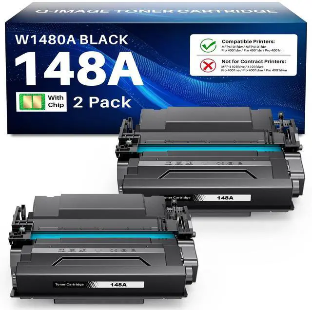 Elcellent Performance: Q-image 148A 148X toner cartridges 2 pack set W148A Toner Cartridge Compatible for hp 148a black laserjet toner cartridge work with Laser Pro 4001 printer with high quality toner to get clear text and reliable printing ^^