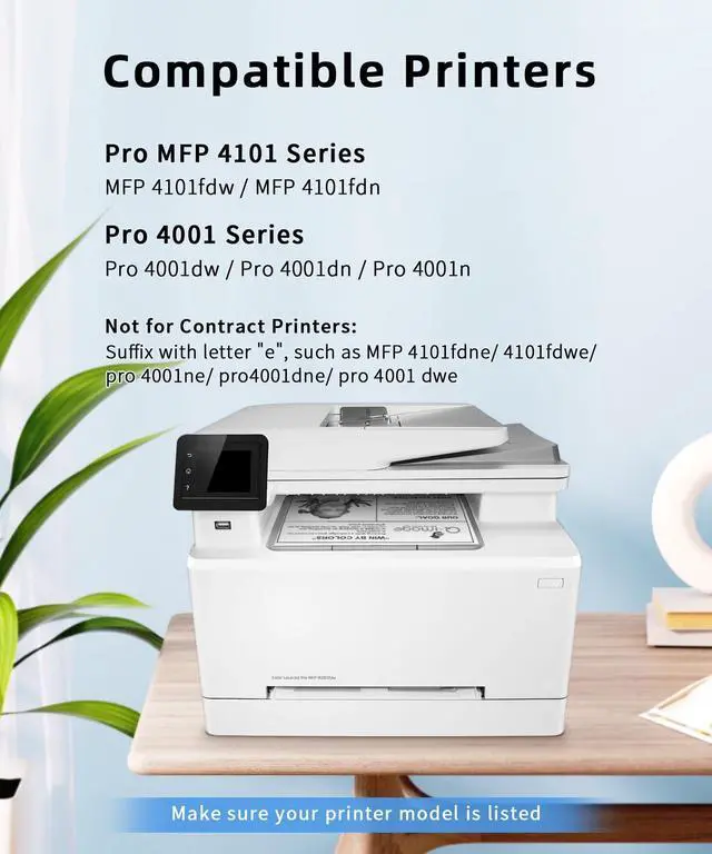 Note: Incompatible suffix with the letter "e", such as MFP 4101fdne, 4101fdwe, pro 4001ne, pro 4001dne, pro 4001dew printer