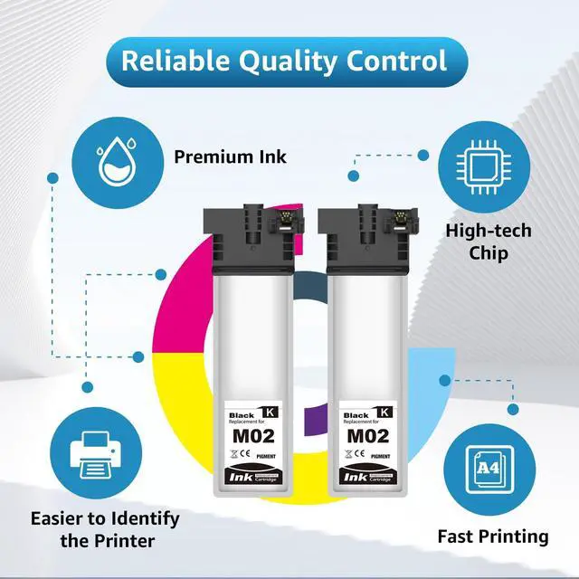Ink capacity: 100ml per bottle ^^ Responsible PrintingBy choosing our remanufactured M02120 Ink Cartridge, you will get consistent, clog-free printing and optimal ink coverage. Rigorously Tested for Guaranteed Reliability.