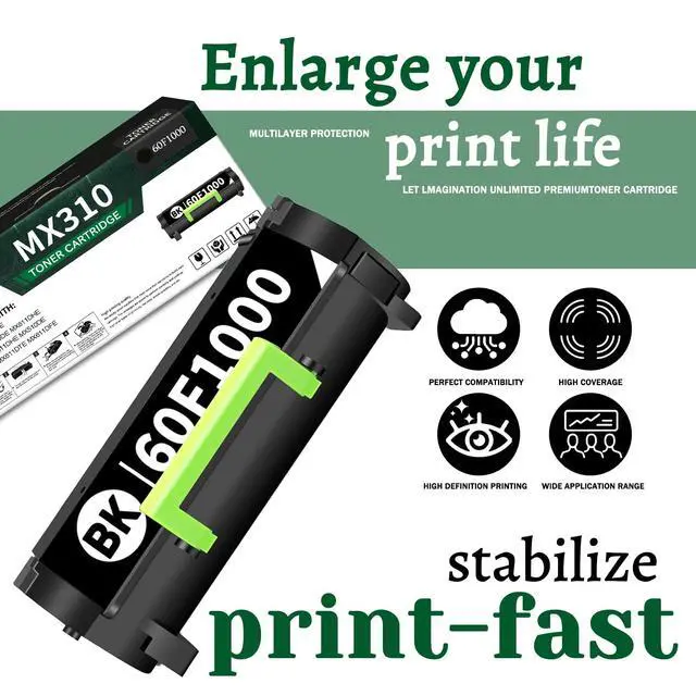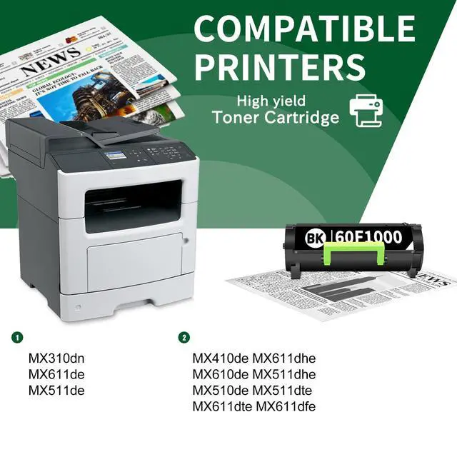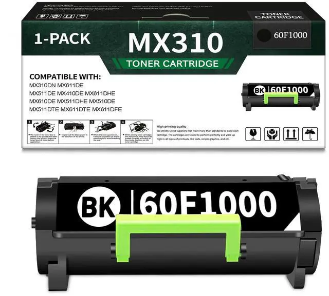 ^^ Compatible with: Lexmark MX310dn MX611de MX511de MX410de MX611dhe MX610de MX511dhe MX510de MX511dte MX611dte MX611dfe Printer. ^^ MX310 601 (60F1000) Toner Cartridges are of high-quality, reliable printing and save time by avoiding common printing problems, a replacement or refund is available for any usage issue.