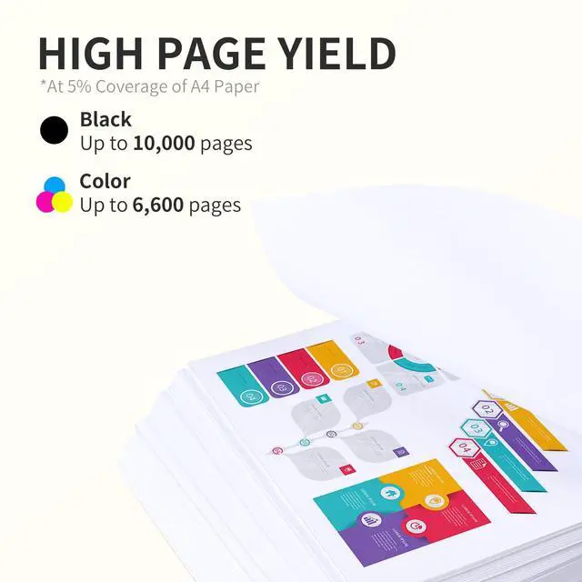 Page Yield: 10, 000 Pages per Black, 6, 600 Pages per 980X Color Ink Cartridge at 5% coverage (Letter/A4) ^^ FOXINK continues to provide you with high print volume, make your printing life easy