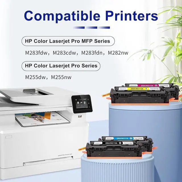 Toner Strong Compatibility: It works seamlessly with Color Laserjet Pro MFP M283fdw / M283cdw / M283fdn / M282nw, Color Laserjet Pro M255dw / M255nw, requiring no complicated setup after installation. It avoids compatibility issues that can cause printing failures ^^ Laser Printer Ink 206A Cartridges 4